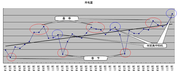 每年的七八九三個(gè)月的暑促高峰來(lái)電量較高;