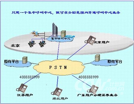企業(yè)希望通過呼叫中心向客戶提供客戶服務,原來沒有呼叫中心平臺,則應用中國電信"一碼通"業(yè)務,只建一個集中呼叫中心,便可在全國范圍內(nèi)開通呼叫中心業(yè)務。企業(yè)應用該方案,初期投資只包括一個呼叫中心平臺,從而實現(xiàn)投資少、見效快、迅速開拓業(yè)務市場的目的。