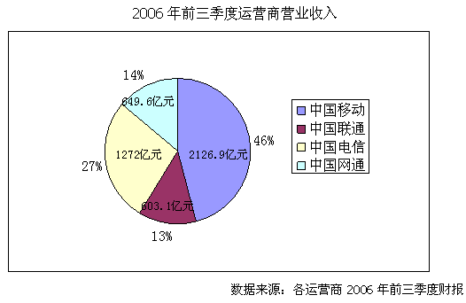 近日,四大運營商紛紛公布2006年前三季度的財務(wù)報表,截止9月底中國移動營運收入達到2126.91億元,比上年同期增長20.8%,遠遠高于競爭對手中國聯(lián)通的營業(yè)收入增長5.6%,而固網(wǎng)運營商中國電信和中國網(wǎng)通的收入增長更低,僅為4.5%和2.03%。透過這些數(shù)字,我們看到的是運營商實力差距的進一步拉大。