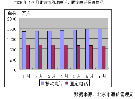 固定電話用戶增長放緩,在北京這種移動電話普及率很高的地區(qū),甚至出現(xiàn)了負增長。