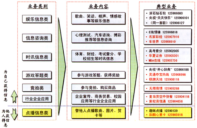 目前,國內(nèi)IVR的業(yè)務(wù)主要集中于為個(gè)人提供服務(wù)上,行業(yè)應(yīng)用所占比例較小,與成熟的國外市場以行業(yè)應(yīng)用為主的現(xiàn)狀形成巨大反差。而且,在為個(gè)人提供的語音業(yè)務(wù)中,國內(nèi)最受歡迎的仍是娛樂信息類中的聊天交友類業(yè)務(wù),這表明國內(nèi)個(gè)人用戶的需求層次較低;其次是娛樂和點(diǎn)播類的音樂類業(yè)務(wù);第三大類是游戲答題類,例如:知識(shí)競猜、有獎(jiǎng)競猜、角色扮演游戲、互動(dòng)游戲等;另外,IVR的數(shù)據(jù)業(yè)務(wù),如:短信、彩鈴、彩信等,受到近兩年國內(nèi)短信、彩鈴業(yè)務(wù)蓬勃發(fā)展的帶動(dòng),近兩年也呈現(xiàn)快速增長的良好勢頭。