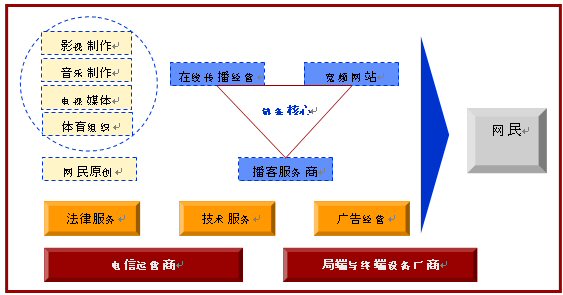 對于互聯(lián)網(wǎng)來講,網(wǎng)絡(luò)視頻代表網(wǎng)絡(luò)內(nèi)容展現(xiàn)形式的變革,而這種變革將帶動(dòng)一個(gè)產(chǎn)業(yè)鏈條的發(fā)展,同時(shí)產(chǎn)業(yè)鏈條各個(gè)環(huán)節(jié)也會(huì)反過來制約網(wǎng)絡(luò)視頻的發(fā)展。2006年以前的中國網(wǎng)絡(luò)視頻發(fā)展處于一個(gè)初級階段,聚集網(wǎng)民注意力,形成網(wǎng)民對網(wǎng)絡(luò)視頻內(nèi)容的瀏覽習(xí)慣是這個(gè)階段網(wǎng)絡(luò)視頻發(fā)展的核心。但是因?yàn)樯虡I(yè)模式的不成熟,網(wǎng)絡(luò)視頻盈利能力弱的基本原因,產(chǎn)業(yè)鏈條中的多個(gè)環(huán)節(jié)都成了抑制網(wǎng)絡(luò)視頻發(fā)展的因素。例如:寬頻形式對網(wǎng)絡(luò)資源的要求一方面加大了寬頻內(nèi)容運(yùn)營的成本,另一方面對網(wǎng)民終端的網(wǎng)絡(luò)條件要求也明顯高于以前的網(wǎng)絡(luò)條件,而這些問題要求電信運(yùn)營商既要降低基礎(chǔ)網(wǎng)絡(luò)資源的價(jià)格又要提高網(wǎng)絡(luò)資源的質(zhì)量,這些工作和讓步短時(shí)間內(nèi)電信運(yùn)營商很難完成,寬頻內(nèi)容運(yùn)營商的運(yùn)營成本就保持居高不下而網(wǎng)民的網(wǎng)絡(luò)視頻效果就差強(qiáng)人意了。像這樣充滿著矛盾因素的抑制環(huán)節(jié)在整個(gè)產(chǎn)業(yè)鏈條中還有很多,因此2006年以前的中國網(wǎng)絡(luò)視頻發(fā)展沒有突破產(chǎn)業(yè)束縛進(jìn)入發(fā)展的快車道。