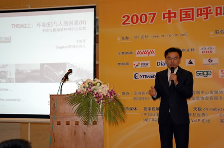 2007年4月18日至20日,2007中國呼叫中心及企業(yè)通信大會在上海光大會展中心國際大酒店隆重召開,以下是專題演講實(shí)錄:主持人(李京成):各位早上好,大會的第三天了,時間像飛一樣的快,今天很多朋友都帶著行李來的,結(jié)束就準(zhǔn)備回家了。今天仍然有兩個分論壇在這個分論壇主題是呼叫中心在海外,另外一個分論壇在十號廳,都有非常優(yōu)秀的專家給大家提供精彩的演講。今天我們第一位給大家演講的大家并不陌生,我們的老朋友豐祖軍先生,有請豐祖軍先生。豐祖軍先生是在國內(nèi)是一個非常資深的呼叫中心運(yùn)營管理專家,我們經(jīng)常在一起合作。在此他演講之前,要做好思想準(zhǔn)備跟上他的跳躍思維,不然會落后,他的思維非?,表達(dá)也非?欤葜v的題目是環(huán)境與人的因素-中國與新加坡呼叫中心的比較,下面把時間交給豐祖軍先生。