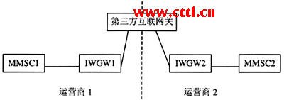 圖2 點對點多媒體消息業(yè)務網(wǎng)間互聯(lián)網(wǎng)絡(luò)結(jié)構(gòu)示意圖