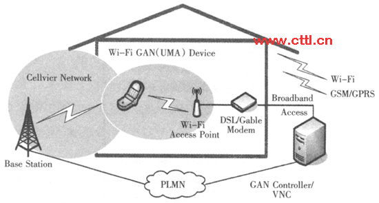 (3)終端融合。終端融合主要是指能夠提供固定和移動網絡連接的智能終端(見圖3),用戶采用多模終端后,可以根據自己的意愿選擇接入最適合的網絡:固定或移動網絡,而網絡本身也可以智能地根據用戶的接入方式作出最佳的動作。