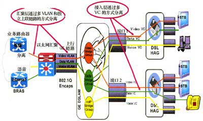 對于采用PPPoE進行認證的方式,主要需要解決的問題是組播數(shù)據(jù)的下發(fā)。因此,可以針對用戶的不同業(yè)務(wù)采用不同的業(yè)務(wù)分發(fā)通道。也就是說,一方面要求BRAS設(shè)備支持IPTV業(yè)務(wù)的PPPoE認證,其相關(guān)的單播數(shù)據(jù)通過PPPoE的通道下發(fā);另一方面組播數(shù)據(jù)通過IPOE的通道進行下發(fā)。這就要求BRAS通過認證信息能夠區(qū)分用戶業(yè)務(wù)種類,而DSLAM設(shè)備需要支持組播分發(fā)及組播組的控制,同時要求STB設(shè)備支持雙協(xié)議棧。這樣??組播業(yè)務(wù)的順利開展。