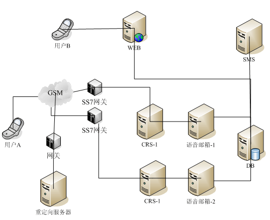 DB數(shù)據(jù)庫(kù)服務(wù)器:用于保存用戶數(shù)據(jù),彩鈴文件,呼叫記錄等
