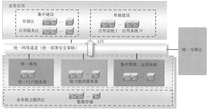 。6)統(tǒng)一展示區(qū):搭建統(tǒng)一門戶,并采用用戶信息統(tǒng)一管理,用戶登陸一次鑒權(quán)機(jī)制,以提供用戶多業(yè)務(wù)統(tǒng)一登陸通道,及一次登陸方式,實(shí)現(xiàn)業(yè)務(wù)統(tǒng)一展示、管理,減小多業(yè)務(wù)給用戶帶來(lái)的感知度。各區(qū)域可分別構(gòu)造統(tǒng)一數(shù)據(jù)存儲(chǔ)系統(tǒng)和統(tǒng)一應(yīng)用系統(tǒng),具體建設(shè)時(shí)可在物理位置上統(tǒng)一部署。