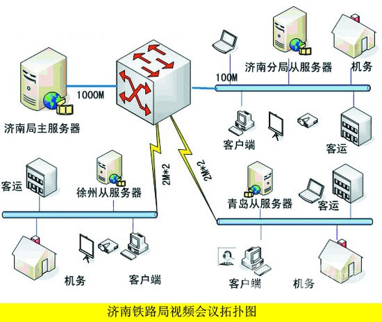 根據(jù)濟(jì)南鐵路局的視頻會(huì)議規(guī)劃和網(wǎng)絡(luò)現(xiàn)狀,視維(即山大聯(lián)潤(rùn)信息科技有限公司)與路局共同設(shè)計(jì)了會(huì)議系統(tǒng)解決方案,在濟(jì)南、青島、徐州部署4臺(tái)高性能視頻服務(wù)器系統(tǒng),利用路局內(nèi)網(wǎng)和公網(wǎng)搭建了覆蓋全路的視頻會(huì)議服務(wù)平臺(tái)。路局的兩臺(tái)服務(wù)器可以互備,提供了服務(wù)器系統(tǒng)和網(wǎng)絡(luò)系統(tǒng)的雙備份,大大提高了系統(tǒng)的可靠性。