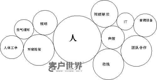 我們“以人為本”的出發(fā)點,相信能夠得到您的認同。但是空間中所包含的元素還是非常的復雜。即使在我們內(nèi)部編寫的《呼叫中心營建白皮書》中,就呼叫中心空間設計的要點一項,就有15個方面之多,相信以后隨著經(jīng)驗和需求的變化,還會有所增加。