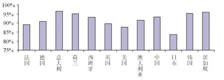 由于所調(diào)查的大多數(shù)是成熟市場(chǎng),因此大多數(shù)國(guó)家的移動(dòng)電話普及率超過(guò)75%。其中,普及率超過(guò)90%意味著有的用戶可能有幾張SIM卡。