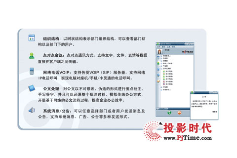 Center運營架構為基礎,有效整合了企業(yè)的如電話、傳真、手機、短信、E-mail、即時通訊等各種常用的通信設備和媒體應用,并進行統(tǒng)一管理、計劃及協(xié)同,是一套集即時通訊、網(wǎng)絡電話、點對點會議、多方視頻會議、遠程教學、遠程監(jiān)控、組織結(jié)構等為一體的桌面融合辦公系統(tǒng),能夠全面滿足企業(yè)遠程的日常交流、會議培訓、協(xié)同辦公、商務談判、指揮調(diào)度、安全保衛(wèi)等各種需求。