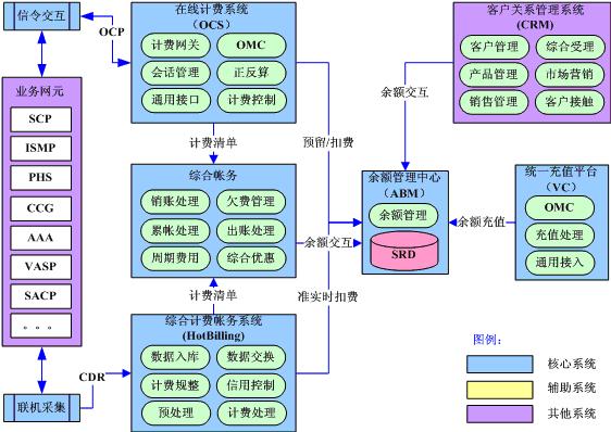 在線計(jì)費(fèi)系統(tǒng)通過(guò)實(shí)時(shí)信令交互實(shí)現(xiàn)對(duì)高風(fēng)險(xiǎn)和高價(jià)值業(yè)務(wù)的實(shí)時(shí)計(jì)費(fèi);綜合計(jì)費(fèi)帳務(wù)系統(tǒng)通過(guò)準(zhǔn)實(shí)時(shí)話單采集實(shí)現(xiàn)對(duì)后付費(fèi)用戶(hù)的準(zhǔn)實(shí)時(shí)計(jì)費(fèi);綜合帳務(wù)系統(tǒng)實(shí)現(xiàn)全業(yè)務(wù)的綜合優(yōu)惠和帳務(wù)處理;獨(dú)立的余額管理中心實(shí)現(xiàn)對(duì)電信余額的統(tǒng)一管理,未來(lái)將成為電信的“內(nèi)部銀行”;統(tǒng)一充值平臺(tái)實(shí)現(xiàn)全網(wǎng)全業(yè)務(wù)的統(tǒng)一充值支付。
