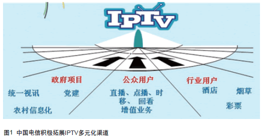 除了公眾用戶市場外,中國電信還積極開拓了酒店、黨建、農(nóng)教、煙草等行業(yè)用戶市場(如圖1),既開辟了IPTV業(yè)務(wù)的多元化渠道,又為規(guī)避現(xiàn)有的政策風險提供了更多的嘗試和借鑒。