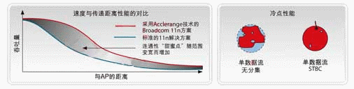 實(shí)現(xiàn)新的802.11n平臺(tái)面臨著嚴(yán)峻的技術(shù)挑戰(zhàn)。Broadcom公司最新的Intensi-fi XLR技術(shù),包括超級(jí)無(wú)線性能以及每個(gè)頻段(2.4GHz和5GHz)上高達(dá)300Mbps的真正無(wú)線帶寬。由于在專門(mén)的5GHz頻段上很少有競(jìng)爭(zhēng)性器件,因此干擾較少,可以提供更多的信道,從而使得將高價(jià)值的多媒體內(nèi)容放在這個(gè)頻段上具有很大的優(yōu)勢(shì)。