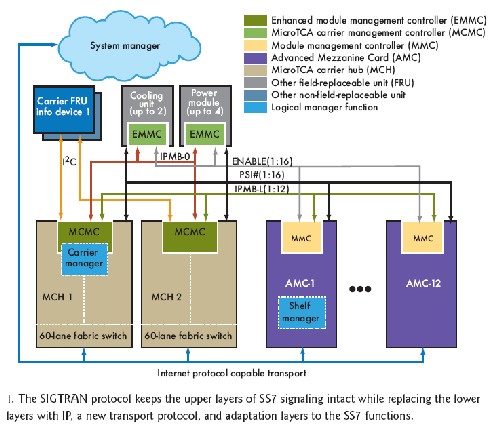 信令網(wǎng)關(guān)用于橋接下一代IP網(wǎng)絡(luò)和傳統(tǒng)的包交換電話網(wǎng)絡(luò)(PSTN),處理的主要是呼叫建立、控制和計(jì)費(fèi)等信號(hào)。網(wǎng)關(guān)設(shè)計(jì)要求融合IP協(xié)議、傳統(tǒng)的交換電路協(xié)議、操作系統(tǒng)、管理以及高可靠性的硬件系統(tǒng)設(shè)計(jì)。MicroTCA、AdvancedMC硬件和現(xiàn)成軟件可以提供構(gòu)建模塊用于開(kāi)發(fā)獨(dú)立的信令網(wǎng)關(guān)設(shè)計(jì),這樣設(shè)計(jì)出來(lái)的網(wǎng)關(guān)很容易隨著IP電話需求的增加而進(jìn)一步擴(kuò)展。