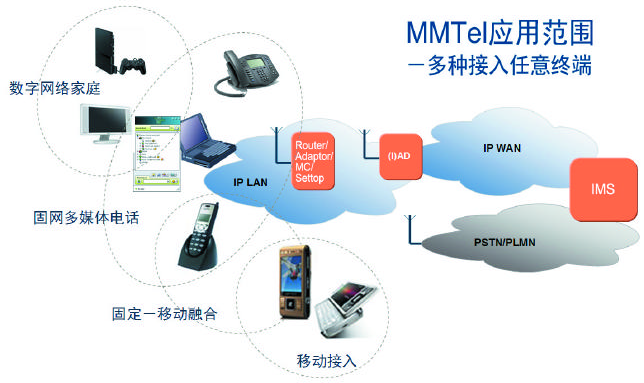 對(duì)于消費(fèi)者而言,MMTel意味著自由度更高的溝通方式:無(wú)論是固話、手機(jī)還是PC,都可以同時(shí)進(jìn)行語(yǔ)音、視頻通話,文字、圖片、音像的傳送或者共享等多項(xiàng)業(yè)務(wù),而且能夠在固定終端和移動(dòng)終端之間自由切換。對(duì)于運(yùn)營(yíng)商來(lái)說(shuō),MMTel則意味著從語(yǔ)音通話和短消息到多媒體電話業(yè)務(wù)的一次全面升級(jí)。MMTel標(biāo)準(zhǔn)中定義了多種多樣的多媒體業(yè)務(wù)和補(bǔ)充業(yè)務(wù),一方面豐富了原有的電路交換業(yè)務(wù),為運(yùn)營(yíng)商帶來(lái)新的利潤(rùn)源泉,另一方面又融合了互聯(lián)網(wǎng)多媒體業(yè)務(wù)的諸多優(yōu)勢(shì),可以幫助全業(yè)務(wù)運(yùn)營(yíng)商有效地吸引終端用戶。