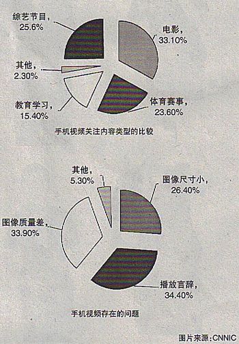 終端是影響手機視頻業(yè)務(wù)發(fā)展的重要因素之一,手機視頻業(yè)務(wù)的發(fā)展對終端提出了更高的要求。手機視頻的實現(xiàn)方式可以分為兩種,一種是本地視頻業(yè)務(wù),一種是在線視頻業(yè)務(wù)。本地視頻業(yè)務(wù)指的是通過手機將視頻內(nèi)容下載到手機上觀看,而在線視頻業(yè)務(wù)則是通過手機連接移動互聯(lián)網(wǎng),借助視頻播放器實時在線觀看視頻內(nèi)容。這兩種方式都決定了終端將成為影響手機視頻業(yè)務(wù)體驗的重要因素,尤其是在線視頻的方式,手機的處理能力將直接影響到視頻的播放速度,同時,手機的屏幕大小和屏幕分辨率也將影響用戶的觀看體驗。
