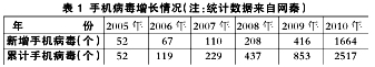 移動(dòng)智能終端與移動(dòng)應(yīng)用商店在向用戶(hù)提供豐富多彩的應(yīng)用軟件和數(shù)字內(nèi)容的同時(shí),智能終端病毒、應(yīng)用軟件吸費(fèi)、非法信息傳播等安全問(wèn)題不斷暴露。移動(dòng)智能終端已經(jīng)成了病毒發(fā)威的新戰(zhàn)場(chǎng),手機(jī)僵尸、給你米等手機(jī)病毒破壞終端功能,惡意吸取資費(fèi),竊取用戶(hù)隱私,極大地?fù)p害了用戶(hù)利益。據(jù)網(wǎng)秦統(tǒng)計(jì),2010年新增的手機(jī)病毒數(shù)是2004~2009年手機(jī)病毒總數(shù)的近兩倍(見(jiàn)表1),預(yù)計(jì)共感染手機(jī)800萬(wàn)部以上。據(jù)報(bào)道,我國(guó)至少有10家Android平臺(tái)的吸費(fèi)SP或渠道公司,抽樣顯示近40%的Android常見(jiàn)應(yīng)用程序被植入惡意吸費(fèi)代碼。在信息內(nèi)容安全方面,包含色情暴力、反動(dòng)言論等信息的應(yīng)用軟件曾出現(xiàn)在App Store中,危害青少年健康成長(zhǎng),影響社會(huì)穩(wěn)定團(tuán)結(jié)。2010年10月,美國(guó)杜克大學(xué)等對(duì)30款A(yù)ndroid應(yīng)用進(jìn)行分析,發(fā)現(xiàn)其中有三分之二的應(yīng)用通過(guò)分享用戶(hù)地理定位數(shù)據(jù)或信息的方式侵犯用戶(hù)隱私,半數(shù)應(yīng)用未經(jīng)用戶(hù)允許將用戶(hù)地理定位信息發(fā)送給廣告網(wǎng)絡(luò)或數(shù)據(jù)分析公司。我國(guó)還存在智能手機(jī)終端內(nèi)置應(yīng)用軟件和第三方應(yīng)用軟件涉黃或吸費(fèi)、手機(jī)WAP網(wǎng)站涉黃等問(wèn)題。另外,黑莓獨(dú)特的加密技術(shù)引發(fā)擔(dān)憂(yōu),德國(guó)等紛紛要求監(jiān)控黑莓通信服務(wù)。