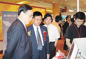 常小兵副總經理(左一)在參觀展區(qū)。