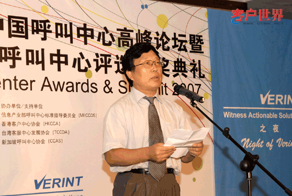 2007年9月18日,北京。[客戶世界消息]2007(第三屆)中國(guó)呼叫中心高峰論壇暨2007年中國(guó)最佳呼叫中心評(píng)選頒獎(jiǎng)典禮今天在北京舉行;本屆會(huì)議由中國(guó)電子商會(huì)呼叫中心與客戶關(guān)系管理專業(yè)委員會(huì)(CNCCA)主辦,客戶世界機(jī)構(gòu)(CCMWorld