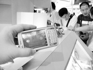 該名管理人員向記者表示,由于深圳還沒有信號,因此在會(huì)場內(nèi)的手機(jī)電視依賴放置在展臺內(nèi)一角的發(fā)射終端獲取信號!澳壳皬V州已經(jīng)有信號,但信號將逐步覆蓋至全省!彼d奮地向記者表示。據(jù)了解,該電視手機(jī)市場售價(jià)可能在2000元左右。