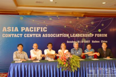 2007年10月18-19日,亞太呼叫中心領(lǐng)導(dǎo)人會議在中國海口舉行。中國大陸CNCCA、香港HKCCA、臺灣TCCDA以及澳大利亞ATA和CCMA、新加坡CCAS、印度尼西亞ICCA等共7個(gè)亞太地區(qū)呼叫中心協(xié)會的領(lǐng)導(dǎo)人參與了會議研討。各協(xié)會一致決定發(fā)起成立“亞太客服與呼叫中心聯(lián)盟”(Asia Pacific Contact Center Association Leaders),就涉及亞太區(qū)域的呼叫中心協(xié)會間合作和溝通事務(wù)發(fā)揮領(lǐng)導(dǎo)作用。亞太呼叫中心協(xié)會領(lǐng)導(dǎo)人簽署合作備忘錄