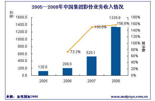 中國集團(tuán)彩鈴業(yè)務(wù)2008年市場收益將達(dá)13.6億元