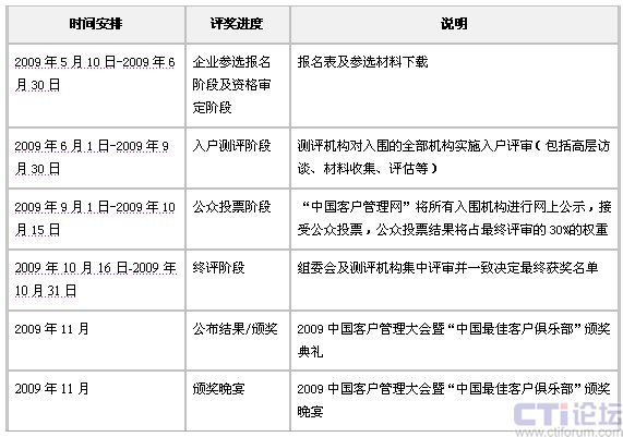 本次評(píng)選活動(dòng)將邀請(qǐng)國(guó)內(nèi)權(quán)威客戶管理研究機(jī)構(gòu)“迪銘客戶管理研究院”為唯一測(cè)評(píng)機(jī)構(gòu)。評(píng)選自2009年5月開(kāi)始,經(jīng)過(guò)一系列的評(píng)選流程,評(píng)選最終結(jié)果將于2009年11月在北京舉辦的“2009中國(guó)客戶管理大會(huì)暨中國(guó)最佳客戶俱樂(lè)部頒獎(jiǎng)典禮”中隆重揭曉。