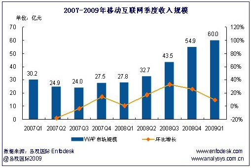 2009首季中國移動(dòng)互聯(lián)網(wǎng)收入達(dá)60億 運(yùn)營商官方門戶有望快速增長(zhǎng)
