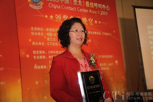 “2009中國(亞太)最佳呼叫中心”大獎。該獎項(xiàng)由中國全國性呼叫中心行業(yè)協(xié)會CNCCA主辦,亞太客服與呼叫中心聯(lián)盟(APCCAL)唯一國內(nèi)官方支持與認(rèn)定,代表著呼叫中心行業(yè)最高規(guī)格的評選活動與極致榮耀。