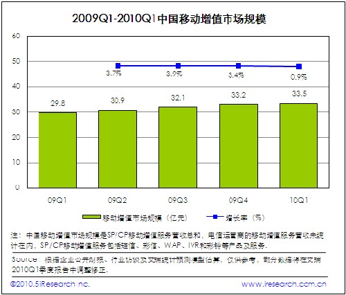 電信運營商計費政策重大調(diào)整對整個移動增值市場產(chǎn)生巨大影響力,2010Q1移動增值市場規(guī)模為33.5億,與09Q1基本持平。電信運營商實施計費通道的強力治理措施,對產(chǎn)品線以WAP計費為主的企業(yè)造成嚴重生存壓力,與此同時采用短信計費的移動增值產(chǎn)品營銷也受到不同程度影響。實現(xiàn)由單一移動增值業(yè)務向移動互聯(lián)網(wǎng)服務進行戰(zhàn)略轉(zhuǎn)型,是SP企業(yè)戰(zhàn)略發(fā)展的實踐路徑。艾瑞認為電信運營商實施全新的合作伙伴計費政策,將重新構建移動增值市場秩序。