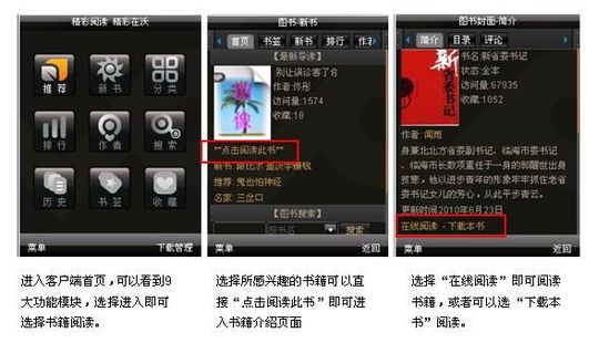 據(jù)介紹,中國聯(lián)通手機閱讀業(yè)務(wù)可支持WAP在線閱讀和客戶端下載離線閱讀,目前可提供的產(chǎn)品是手機WAP瀏覽和JAVA客戶端。也就是說,中國聯(lián)通全網(wǎng)WAP用戶及支持JAVA的手機用戶,均可使用該業(yè)務(wù)。
