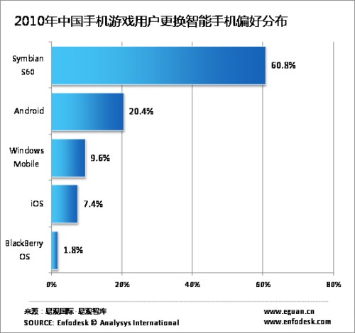 隨著終端和操作系統(tǒng)的變化,預(yù)計(jì)在 2011年Android平臺(tái)將成為眾多開(kāi)發(fā)商所必須重視的市場(chǎng),開(kāi)發(fā)占比上將會(huì)逐步提高。