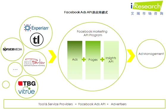 iResearch艾瑞咨詢整理Insidefacebook最新行業(yè)動態(tài)時發(fā)現(xiàn),F(xiàn)acebook于2011年8月1日正式宣布開放廣告接口(Ads API)應用服務,通過在該接口上投放第三方的高效廣告管理工具,廣告主甚至可以保證數(shù)百萬的復雜媒體營銷計劃正常運營并實現(xiàn)廣告管理的高效優(yōu)化。到目前為止,F(xiàn)acebook只為少數(shù)有限的第三方廣告管理工具供應商提供了準入接口,包括Techlightenment(近日被Experian收購)、TBG Digital(與Vitrue達成協(xié)作)、Spruce Media、AdParlor等。此外,F(xiàn)acebook也建立了廣告接口營銷項目計劃,通過收取廣告、頁面、廣告接口洞察等相關費用來實現(xiàn)盈利。隨著更多的第三方工具與服務供應商進入Ads API市場,越來越多的當?shù)匦⌒蛷V告主也有望享受低成本的廣告優(yōu)化管理服務。