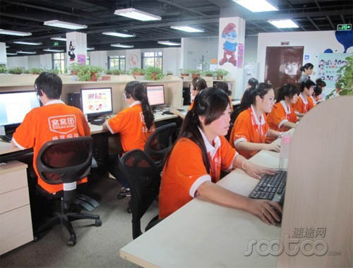 速途網(wǎng)在窩窩團(tuán)位于北美國(guó)際商務(wù)中心的呼叫中心看到,窩窩團(tuán)在線客服和call center以及論壇維護(hù)等部門(mén)在一層,而二層是劃分成商超、票務(wù)、親子麗人、中餐、旅游、甜品、生活?yuàn)蕵?lè)等部門(mén)的部分銷售團(tuán)隊(duì)。