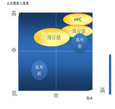 從企業(yè)戰(zhàn)略咨詢分析師的角度,我認(rèn)為IBM的戰(zhàn)略布局和資源整合策略確實(shí)是IT領(lǐng)域戰(zhàn)略規(guī)劃很好的教科書(起碼對于我個(gè)人而言)。精準(zhǔn)的定位市場、以具有明顯技術(shù)細(xì)分優(yōu)勢的產(chǎn)品或服務(wù)切入市場、設(shè)定較高的技術(shù)準(zhǔn)入門檻,這些戰(zhàn)略舉措不僅有助于IBM快速占領(lǐng)新生市場戰(zhàn)略制高點(diǎn),同時(shí)保證了其可持續(xù)競爭優(yōu)勢和利潤空間。從下面的云計(jì)算準(zhǔn)入/云服務(wù)SLA象限圖上,當(dāng)很多廠商還在考慮“哪塊云彩有雨”時(shí),IBM已經(jīng)完成在云端提供HPC和高增值二級存儲服務(wù)的布局,掌控了利潤最豐厚的云計(jì)算高端市場。從我個(gè)人的預(yù)測,IBM在云端提供一級存儲服務(wù),應(yīng)該是其云計(jì)算高端戰(zhàn)略的下一個(gè)布局。