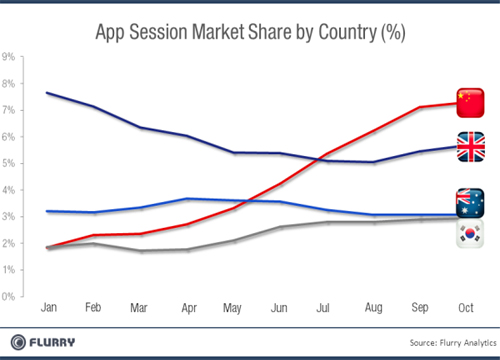 北京時間11月3日消息,據國外媒體報道,日前,移動應用分析網站Flurry發(fā)表分析文章稱,iOS和Android移動應用的下載量不斷增加,而中國的移動應用下載量和新應用需求更是迅猛增長,中國已經一躍成為全球第二大移動應用市場,全球應用開發(fā)者都不可忽視中國市場。