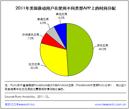 2011年游戲與社交占據(jù)美國(guó)移動(dòng)用戶應(yīng)用使用時(shí)間前兩名
