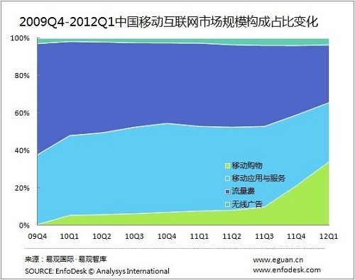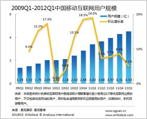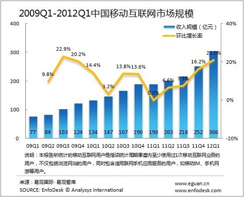 易觀:2012Q1中國移動(dòng)互聯(lián)網(wǎng)市場(chǎng)規(guī)模突破300億
