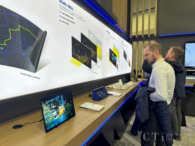 在CES 2024展會上,BOE(京東方)車載業(yè)務仍然是展示的重點,京東方精電攜多款前沿車載顯示產(chǎn)品和智能座艙解決方案重磅亮相。其中,BOE(京東方)全球首發(fā)超大尺寸Oxide智能座艙——45英寸9K氧化物Mini LED車載貫穿屏,借助Oxide產(chǎn)品的高電子遷移率優(yōu)勢實現(xiàn)9K超高分辨率和90Hz超高刷新率,采用玻璃基MLED背光可實現(xiàn)6048超高分區(qū)頂級畫質、百萬級超高對比度和1500nits亮度顯示效果,可有效降低20%~30%功耗;此外,BOE(京東方)還聯(lián)合康寧應用了冷彎成型技術,通過在室溫條件下使玻璃彎曲來打造環(huán)抱式曲面設計,以更加綠色環(huán)保的生產(chǎn)工藝引領行業(yè)可持續(xù)發(fā)展。
