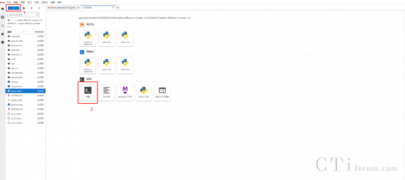 參加本次活動(dòng),用戶只需四步就可開啟AI作圖之旅。第一步,在商城選擇stable-diffusion-xl-1.0 商品后點(diǎn)擊“立即使用”,并在后續(xù)出現(xiàn)的notebook頁面點(diǎn)擊左上角“+”,以此進(jìn)入終端頁面。