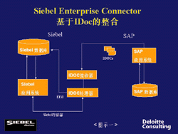 如果在CRM設(shè)計(jì)中就充分考慮到了哪些數(shù)據(jù)需要不斷和ERP進(jìn)行同步更新,上述麻煩就會(huì)大大減少。這也是為什么像Siebel這樣的行業(yè)領(lǐng)先的前端辦公軟件開始提供與SAPR/33.1以上版本的ERP進(jìn)行完全兼容的中間軟件(middle ware)。