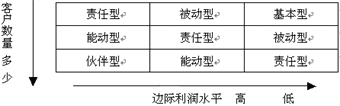 需要指出的是這5種程度的客戶關(guān)系類型并不是一個(gè)簡(jiǎn)單的從優(yōu)到劣的順序,企業(yè)所能采用的客戶關(guān)系的類型一般是由它的產(chǎn)品以及客戶決定的, 比如寶潔公司它的洗發(fā)水、洗衣粉的客戶之間是一種被動(dòng)性的關(guān)系:寶潔設(shè)立客戶抱怨處理機(jī)構(gòu),處理客戶投訴,改進(jìn)產(chǎn)品;但是寶潔和沃爾瑪特之間卻可以建立互惠互利的伙伴性關(guān)系?铺乩崭鶕(jù)企業(yè)的客戶數(shù)量以及企業(yè)產(chǎn)品的邊際利潤(rùn)水平提供了一個(gè)表格幫助企業(yè)選擇自己和是的客戶關(guān)系類型。