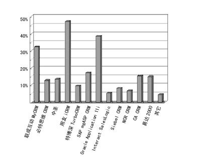 在知道CRM的220份樣本中,已實(shí)施CRM的企業(yè)共有27家,占12%。但如和總體樣本相比,它僅占1%。這既說明我國已應(yīng)用CRM的單位非常之少,也預(yù)示著我國CRM市場潛力巨大。