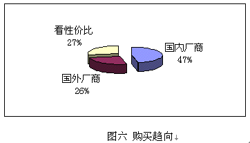 鑒于國(guó)內(nèi)并沒有知名度很高的CRM實(shí)施廠商,而國(guó)外的著名廠商在國(guó)內(nèi)的品牌宣傳也不足,所以調(diào)查表中只設(shè)了:國(guó)內(nèi)廠商、國(guó)外廠商和根據(jù)性價(jià)比進(jìn)行選擇三個(gè)項(xiàng)目,與購(gòu)買能力對(duì)照,預(yù)期實(shí)施金額在100萬(wàn)以下的企業(yè),一般側(cè)重國(guó)內(nèi)廠商,而實(shí)施金額在100萬(wàn)以上企業(yè)則側(cè)重國(guó)外企業(yè)。
