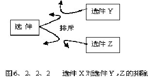 選件的排除關(guān)系是指在產(chǎn)品配置時(shí),選擇了一件就不能選擇另外一件或多件。比如在旅行社在組團(tuán)時(shí)規(guī)定,如選擇了酒店A,就無(wú)法選擇組件交通工具中的選件火車,因?yàn)榫频闍離火車站太遠(yuǎn)。圖6、2、2、2說(shuō)明了這種關(guān)系。