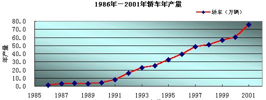 1997年上汽集團(tuán)與美國通用的合資企業(yè)上海通用公司成立,產(chǎn)品定位在"別克"中高檔汽車上;1998年本田公司替代標(biāo)致公司成為廣州的合作伙伴,產(chǎn)品定位在"雅閣"中高檔汽車。產(chǎn)品品種的豐富以及生產(chǎn)能力的擴大,為今后中高檔汽車市場需求的快速增長奠定了穩(wěn)固的基礎(chǔ)。