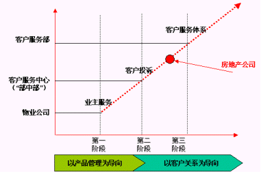 在以客戶關(guān)系為中心的時代,房地產(chǎn)公司對于客戶服務的認識,經(jīng)歷了逐漸成熟的發(fā)展過程,主要經(jīng)歷了以下三個階段: