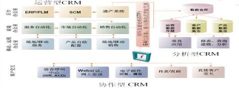 從上圖中不難看出,CRM的三種類型:運營型、協(xié)作型、分析型。前兩種形式只是一些簡單的記錄,把銀行業(yè)所需要的客戶基本檔案的收集,非常簡單。真正能對銀行經(jīng)營產(chǎn)生效益在于分析型CRM,其重點在于對相關(guān)數(shù)據(jù)的分析與挖掘----BI,強調(diào)提供詳細分析。
